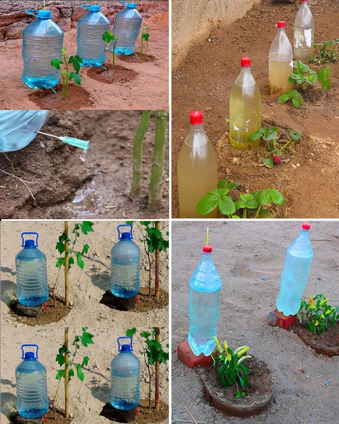 Propíchněte víčko 2–4 malými dírkami, naplňte láhev vodou, zašroubujte a otočenou ji zasuňte hrdlem do půdy vedle rostliny. Voda bude vytékat postupně dle potřeby.