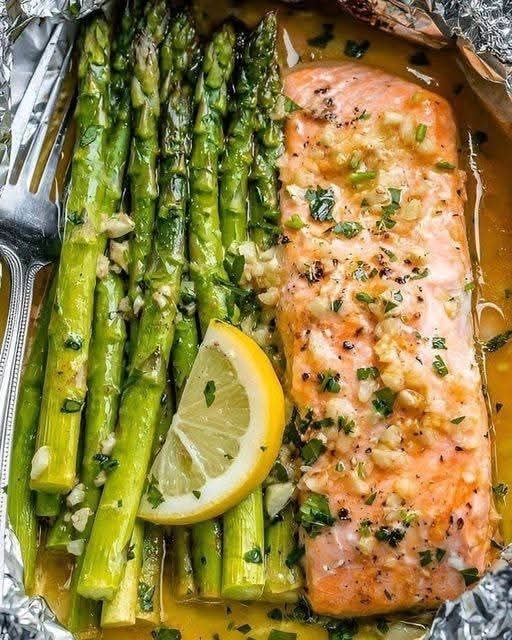 Pečený losos v alobalu je jedním z nejoblíbenějších způsobů přípravy ryb – zůstává krásně šťavnatý, a přitom získá intenzivní chuť díky máslové omáčce s citronem a česnekem. Tento recept je rychlý, zdravý a vhodný i pro začátečníky. Ideální kombinace jemného lososa a křupavého chřestu potěší každého gurmána.
