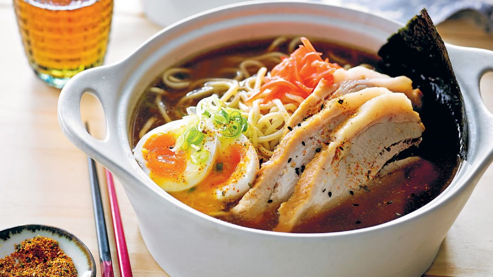 Ramen polévka z vepřového boku s miso pastou z pomalého hrnce