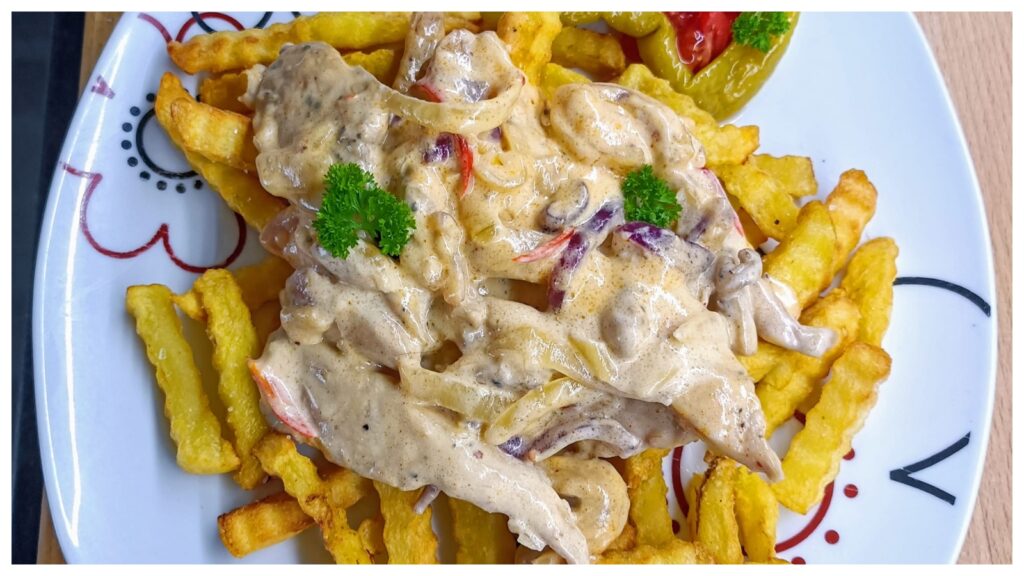 Krakonošův oheň z kuřecího masa s hranolkami je pikantní a zároveň lahodný pokrm, který vás překvapí svou výraznou chutí a jednoduchostí přípravy. Tento recept je inspirován legendárními příběhy o Krakonošovi a přináší do vaší kuchyně trochu horské magie. Pikantní kuřecí maso v krémové omáčce s chilli podávané s křupavými hranolkami je ideální volbou pro oběd nebo večeři, když máte chuť na něco netradičního a chutného.